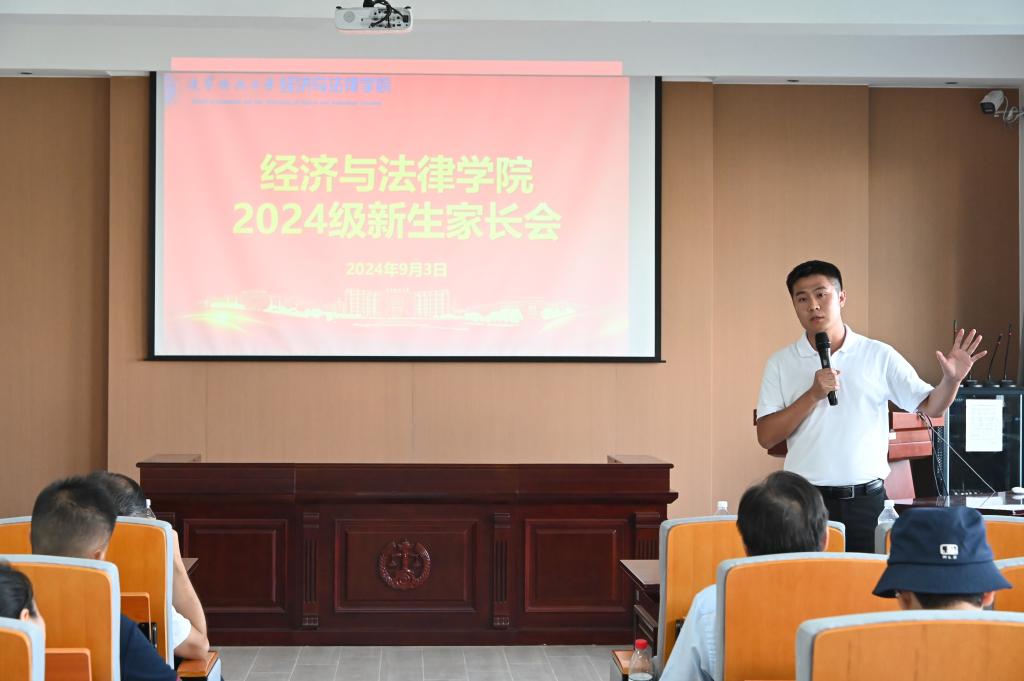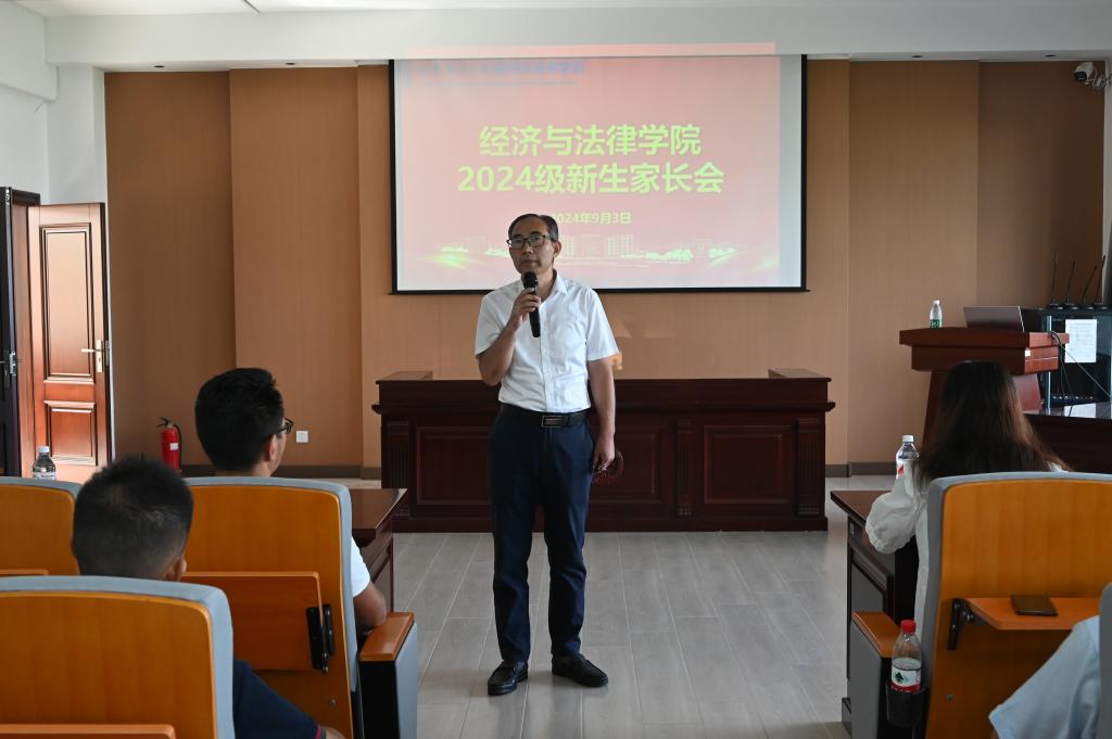 为进一步加强家校沟通合作,9月3日,经法学院于博识楼A402召开2024级新生家长会。学院党委书记赵智博、党委副书记张国华、学办主任齐艳萍、团委副书记张鹏飞出席本次会议,学院2024级共计100余名新生家长参加。