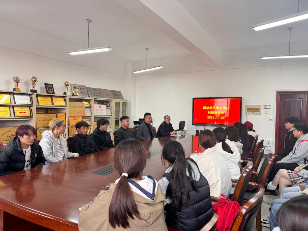 会上,学院党委书记赵智博首先总结了几年来学院在藏族学生教育管理方面的经验及存在的不足。针对藏族同学入学成绩低、英语和数学基础较差、部分高年级同学达到无学位警示的情况,学院经研究决定,采取以下学业帮扶措施:一是朋辈引领,结对帮扶。学院为每一名藏族同学安排一名成绩优秀的学生骨干进行一对一结对,从督促早起、按时上课、课后复习等方面在学业上进行帮扶。二是专业教师,个性指导。学院从4个专业分别选取一名优秀教师,对该专业藏族学生从学业发展规划、课程学习、实习就业等方面进行具体指导。三是多管齐下,全面帮扶。学院4名本科生辅导员分别从思想、学习、心理、实践方面对藏族学生进行全面帮扶。