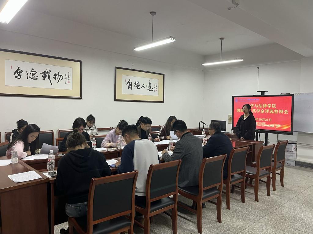 为充分发挥奖学金激励作用,助力学生真正做到自立自强,10月31日下午,经法学院于博识楼A313召开2023-2024学年度国家励志奖学金评选答辩会。评委会由经法学院学生工作负责人、学办主任、辅导员以及班主任、任课教师和学生代表组成,经学生申请、学院评议后,共35名候选人进入本次答辩。