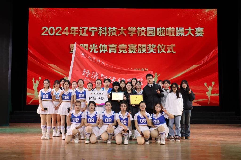 12月8日下午,时博足球_时博(中国)在校礼堂举办“彩虹杯”啦啦操大赛。经法学院代表队凭借坚毅的信念与不懈的努力,在校园啦啦操大赛和阳光体育竞赛学生团体总分中均获得第七名的好成绩。