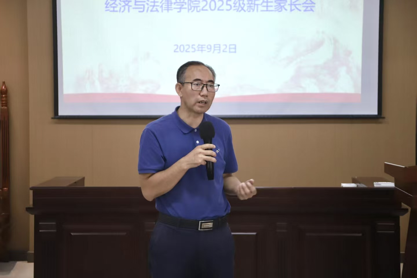 为搭建家校沟通桥梁,凝聚育人合力,9月2日,经法学院于博识楼A402召开2025级本科新生家长会。本次会议由党委副书记张国华主持,学院党委书记赵智博、学办主任李路云、法律系主任陈辛迪博士出席,60余名新生家长参会。