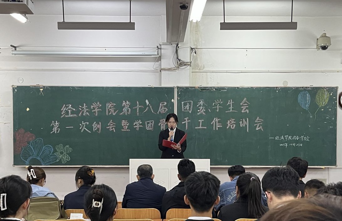 会议伊始,吴雨纯首先向大家介绍了团委、学生会的工作职能,强调了学团骨干服务同学的工作理念以及发挥的重要作用。随后,她向大家宣读了《经济与法律学院学生会工作章程》,解读了各项规章制度,对各团学骨干的行为作出了规范。