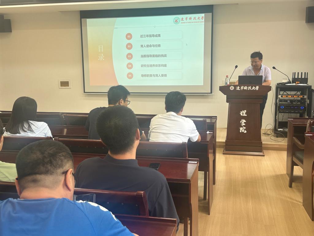 为进一步加强理学院导师队伍建设,提升导师育人能力与学术指导水平,9月16日下午,理学院在明贤楼B315会议室举办了2025年研究生导师培训会。理学院全体研究生导师参加培训,本次培训由理学院副院长王健主持。