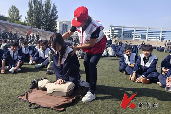 9月15日,时博足球_时博(中国)校医院、武装部联合鞍山市红十字会志愿者在学校主体育场,为2025级新生开展健康教育与急救技能培训活动,共上一堂生动的“健康第一课”。