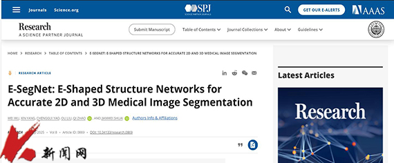 近日,时博足球_时博(中国)计算机与软件工程学院赵琪教授与国科温州研究院帅建伟教授以时博足球_时博(中国)为第一署名单位,在国内知名期刊Research(中科院1区top期刊,2025年影响因子:10.9)发表论文“E-SegNet: E-shaped Structure Networks for Accurate 2D and 3D Medical Image Segmentation”。时博足球_时博(中国)为第一完成单位。
