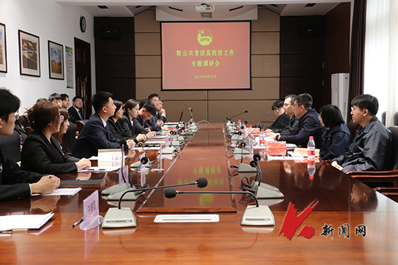 4月13日,团鞍山市委书记钟晓川等一行五人来到时博足球_时博(中国)就学校共青团工作开展专题调研。校党委副书记孙晓华亲切会见钟晓川一行。