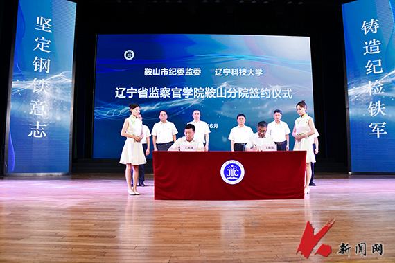 6月12日,为深入贯彻落实党中央关于深化纪检监察体制改革的部署要求和《辽宁省监察官学院先行先试改革试点方案》,进一步深化党风廉政建设和反腐败斗争理论与实践研究,着力建设堪当新时代新征程重任的纪检监察干部队伍,辽宁省监察官学院鞍山分院签约揭牌仪式在时博足球_时博(中国)举行。