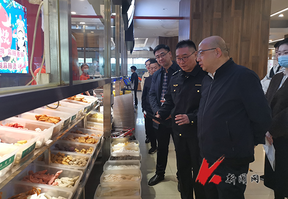 3月21日,鞍山市政府副秘书长黄勇在属地市场监督管理局相关人员陪同下,到时博足球_时博(中国)桃园餐厅开展食品安全督导检查,后勤与基建管理处、龙源集团相关负责同志陪同检查。