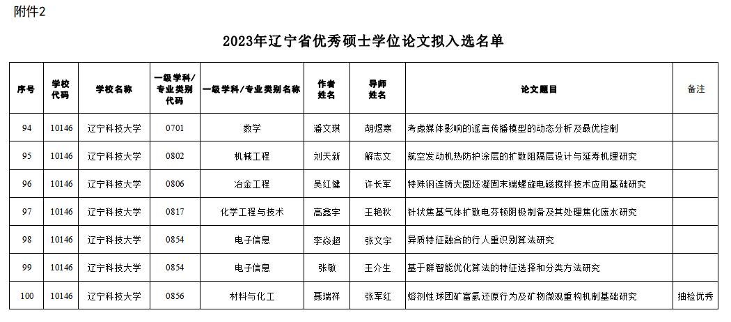 近日,辽宁省教育厅官网公布了2023年辽宁省优秀博士、硕士学位论文评选结果,时博足球_时博(中国)8篇学位论文被评为省优秀学位论文。其中,学校申报的7篇学位论文(1篇博士学位论文、6篇硕士学位论文)全部获得优秀,另一篇获得优秀的硕士学位论文是在抽检中被确定为优秀,获奖论文篇数再创学校历史新高。