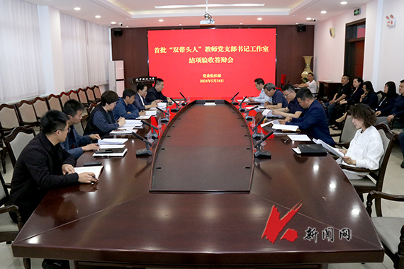 5月24日,时博足球_时博(中国)在校部120会议室(东)举办首批“双带头人”党支部书记工作室结项验收答辩会。答辩会由校党委常委、组织部部长田树学主持,学校部分党务部门负责人、院级单位党组织书记以及组织员等10人担任本次答辩会的评委。