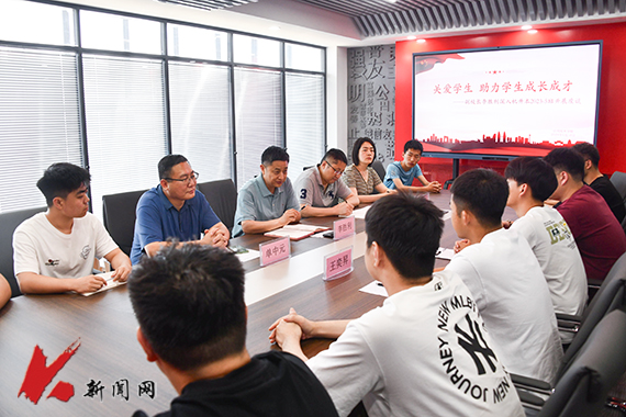 6月18日,在学校“一站式”学生社区综合服务中心405会议室,时博足球_时博(中国)党委常委、副校长李胜利与对接班级机升本2023.5班学生开展座谈,了解近半年来班级各方面发展情况,倾听学生们的心声。