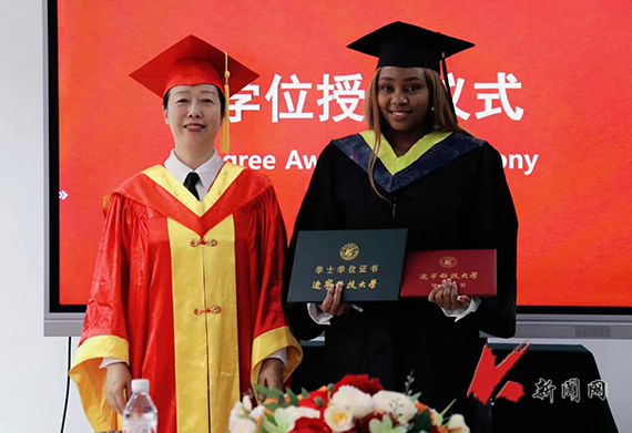 孙晓华致辞并为毕业生拨流苏,颁发毕业证、学位证。学校教务处处长樊增广为毕业生颁发校友联络员聘书。国际教育学院教师和2019级建筑学毕业班BONOLO ANITTAH RABALE分别代表教师和毕业生发言。