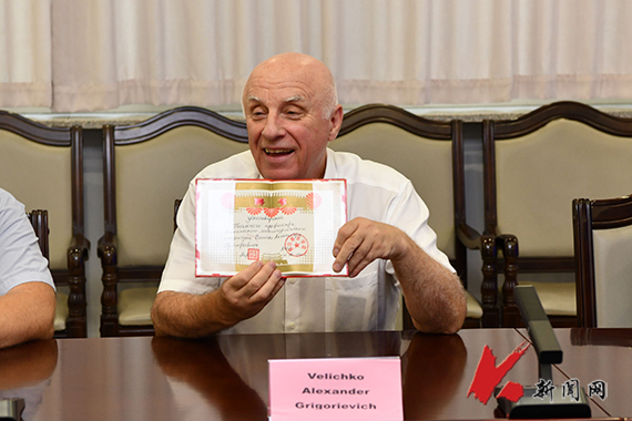 胡军表示,乌克兰国立科技大学是我校重要合作伙伴之一,希望双方基于各自优势学科领域继续深入合作,并计划未来对乌克兰国立科技大学进行回访。会见结束后,胡军为乌克兰国立科技大学通信院士Velichko Alexander Grigorievich颁发时博足球_时博(中国)荣誉教授聘书,感谢他多年来为两校间的合作交流做出的贡献。