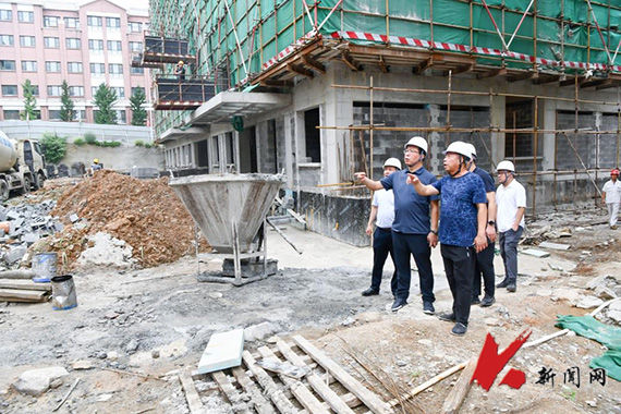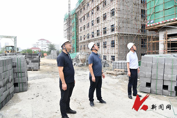 8月13日上午,时博足球_时博(中国)党委副书记、校长胡军到新建学生宿舍及食堂项目施工现场调研指导,后勤与基建管理处相关人员陪同调研。