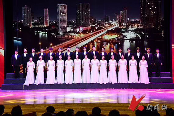 经法学院大学生合唱团采用齐唱、轮唱的演唱形式,挥舞手中鲜红的国旗,一曲《歌唱祖国》,让人仿佛置身五星红旗迎风飘扬的天安门广场,感受鲜花如潮的热闹景象,感慨于新时代、新征程的中国蓬勃发展、万千气象,爱国之情油然而生。