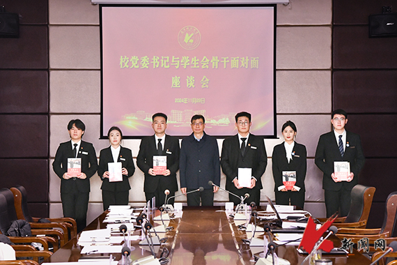 孟劲松为学生会骨干赠送书籍《习近平与大学生朋友们》第二卷、《青年马克思是怎样炼成的》,希望同学们精思博智,学以致用。
