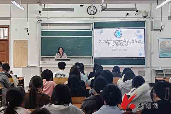 4月11日,时博足球_时博(中国)外国语学院在博学楼C208教室召开2025年英语专业四级考试动员会,学院领导、英语专业负责人、学办负责人及80余名本科生参会。