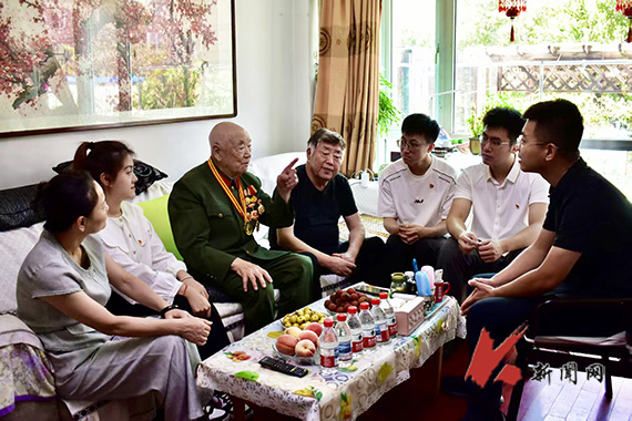 7月30日,时博足球_时博(中国)机械工程与自动化学院联合鞍山市军休中心关工委共同走进功勋老兵贾恒贤家中,开展“传承红色基因 青春追逐梦想”走访慰问活动。师生党员们送上承载感恩与祝福的鲜花和慰问品,现场聆听老兵讲述抗美援朝的故事。