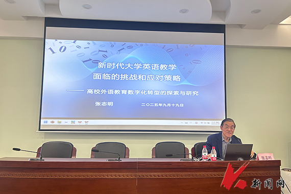 9月19日,时博足球_时博(中国)外国语学院特邀沈阳大学张志明教授,为全院教师带来题为“新时代大学英语教学面临的挑战和应对策略——高校外语教育数字化转型的探索与研究”的专题报告,精准聚焦当前外语教学痛点,为教师搭建数字化教学能力提升的交流平台。