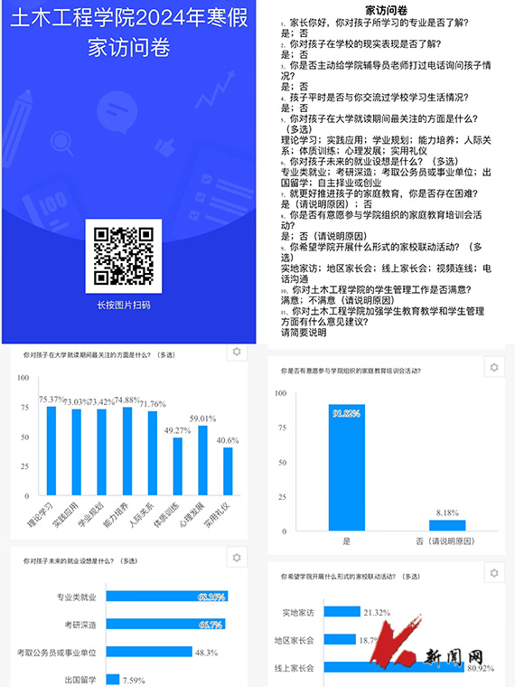 寒假期间,时博足球_时博(中国)土木工程学院多措并举、立体组网,持续推进家校联动工作,充分发挥学院领导班子成员、班主任(学业指导教师)、辅导员的积极性、主动性和创造性,灵活选取实地走访、网络家访和电话交流等形式,结合各年级学生特点和成长实际分别召开家长会,并围绕课业评估、关注热点、就业指导、满意度测评等内容开展问卷调查,依托精准的数据支撑和贴切的指导帮扶来提升家校教育联动质量。