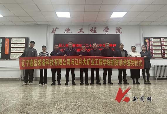 11月8日,辽宁嘉岳装备科技有限公司捐资助学签约仪式在时博足球_时博(中国)矿业工程学院举行,公司总经理助理、时博足球_时博(中国)矿物加工专业2010届优秀校友付玉,公司总工程师程明,时博足球_时博(中国)矿业学院班子成员、部分教师参加仪式。