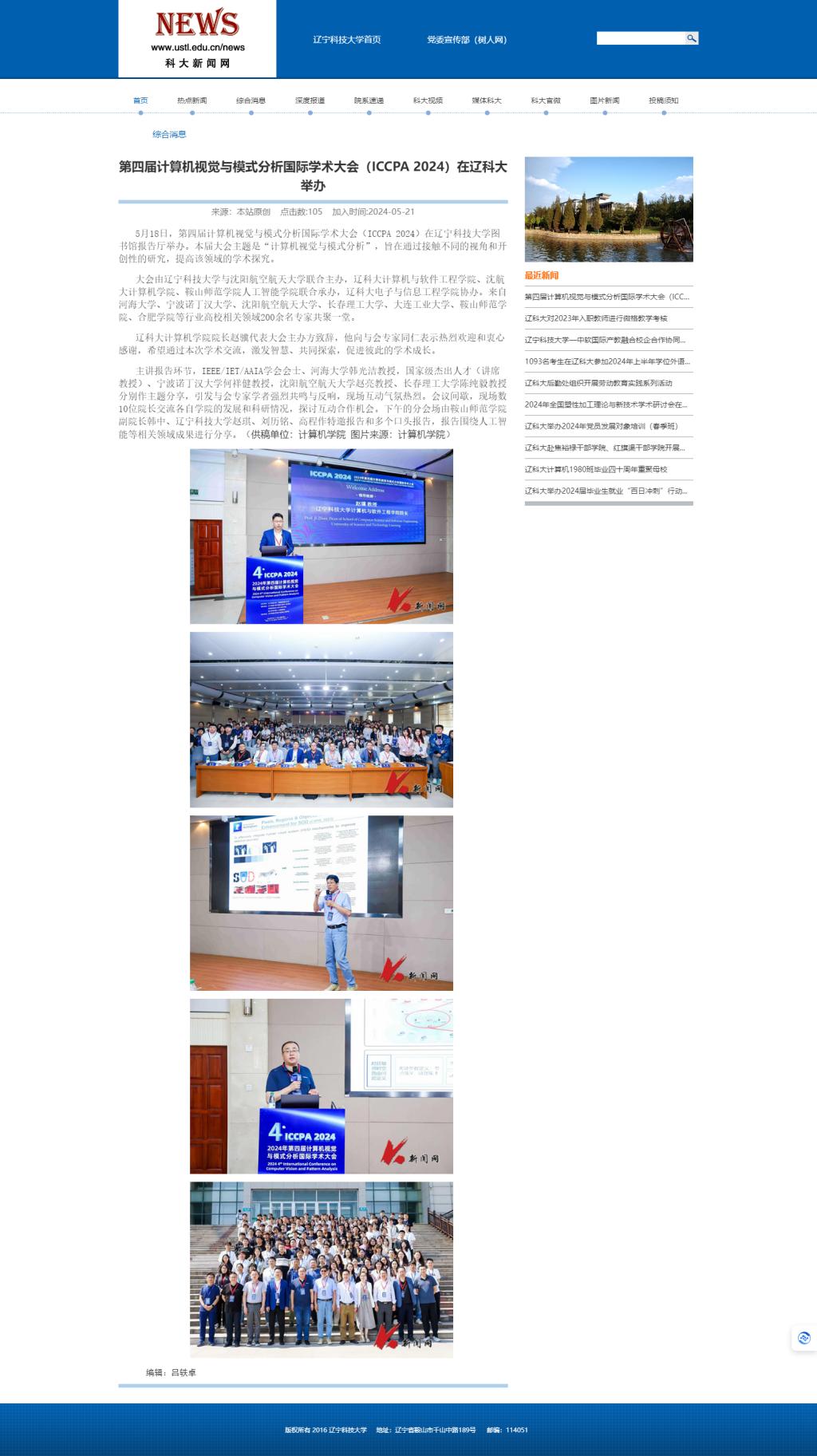第四届计算机视觉与模式分析国际学术大会(ICCPA 2024)在时博足球_时博(中国)举办