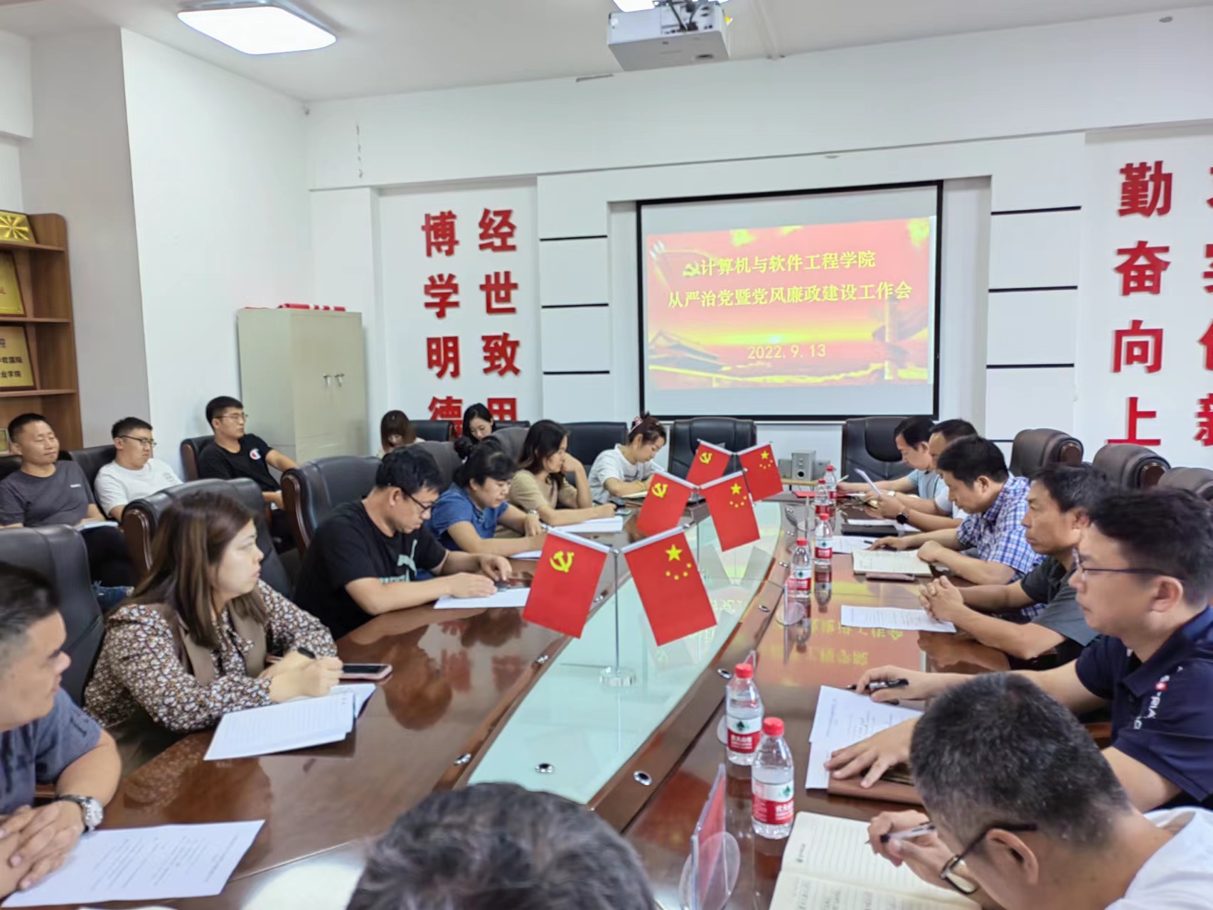 2022913日下午,计算机学院从严治党暨党风廉政建设工作会在博识楼B327召开,学院领导班子成员、科级以上干部、系(中心)主任、党支部书记参加会议,会议由院长赵骥主持。