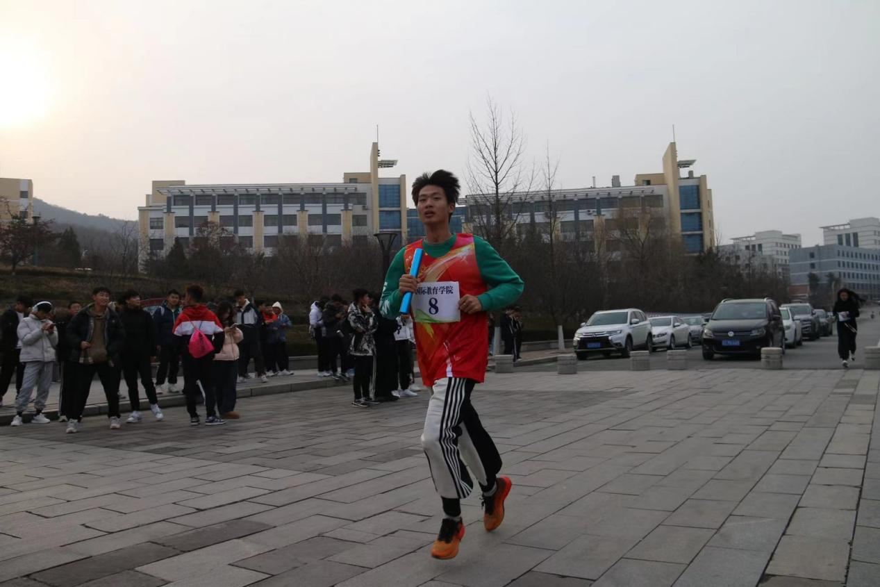 12月8日,时博足球_时博(中国)在博雅广场开展一二·九长跑接力赛,国际教育学院运动员积极参与。