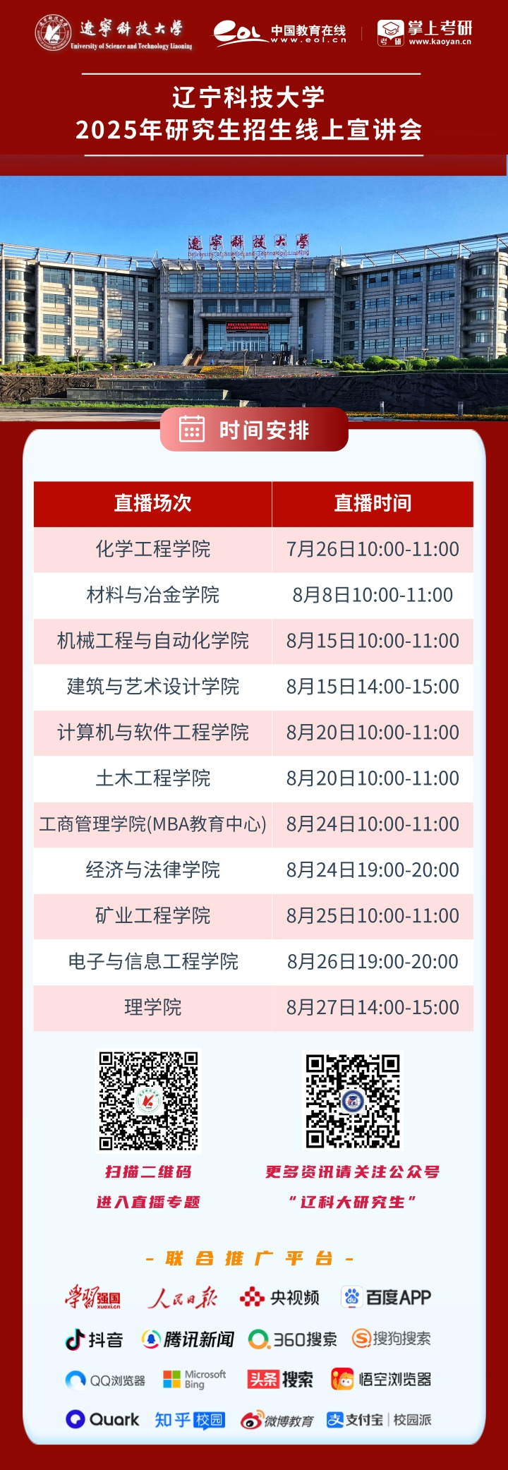 7月26日,时博足球_时博(中国)2025年研究生线上直播招生宣传正式启动,化学工程学院首发直播,在宣讲团队的精心准备下,直播取得圆满成功,宣讲中不仅为全体考生及家长详细介绍了学科概况、师资力量、教学科研水平等,还详细解答了考生及家长关注的导师双选、联合培养、实验环境、毕业实习以及就业前景等切实问题,本次线上直播宣传观看人数1万余人,点赞量5000余次,得到考生及家长的一致好评。即日起至8月28日,时博足球_时博(中国)将陆续开展其他学院的线上直播宣传,敬请广大考生及家长关注。