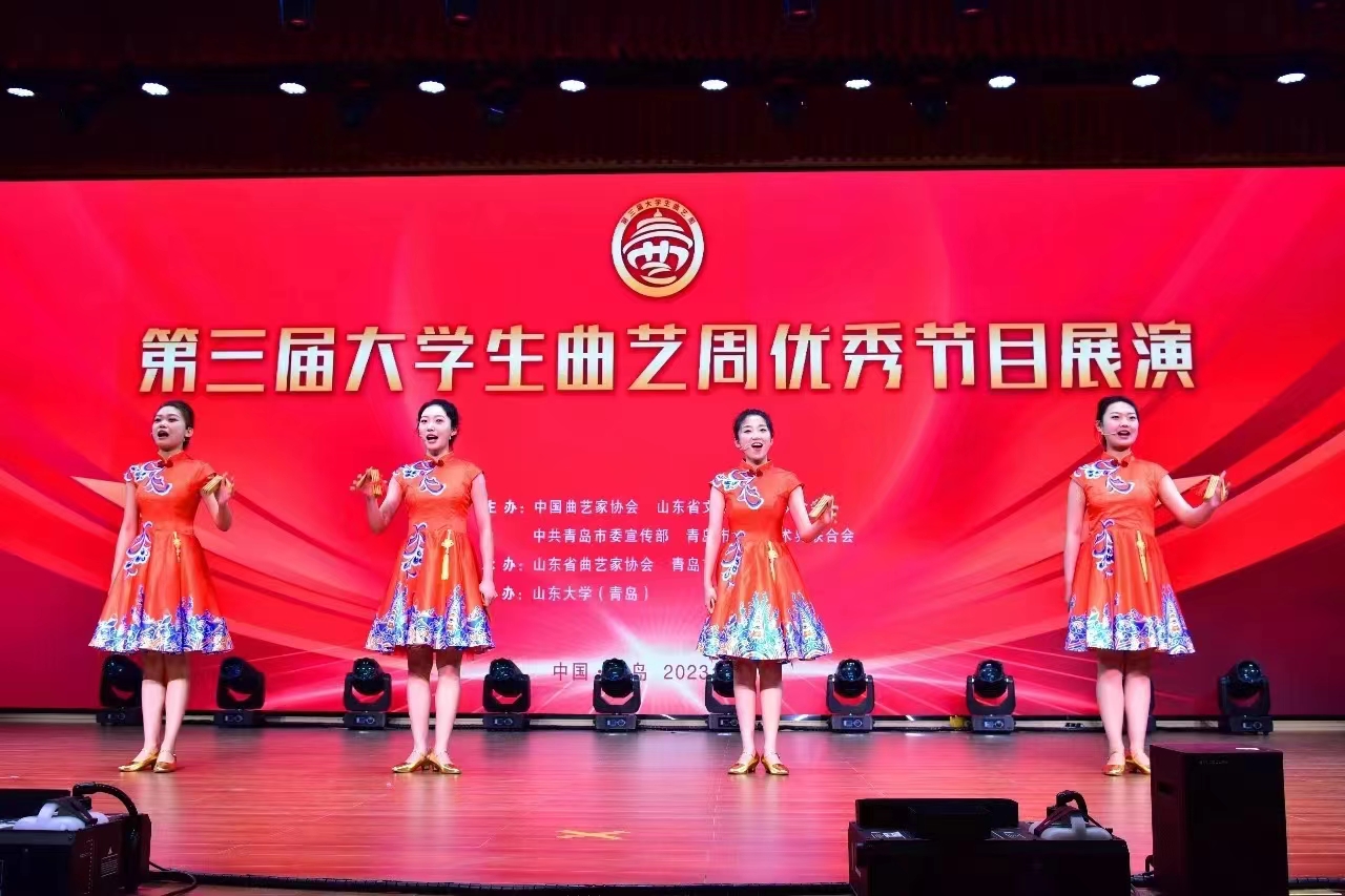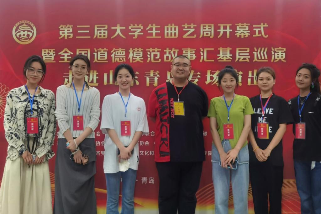 5月19日-21日,第三届大学生曲艺周在青岛举行。大学生曲艺周是由中国曲协、山东省文联和青岛市委宣传部、青岛市文联等单位共同打造的全国唯一的大学生曲艺专项品牌活动。本次活动由山东省曲协、青岛市曲协、中共李沧区委宣传部承办。时博足球_时博(中国)艺术学院选送作品群口快板《中国诗民族魂》、相声《女神养成记》入选展演,师生7人赴青岛参加曲艺周。